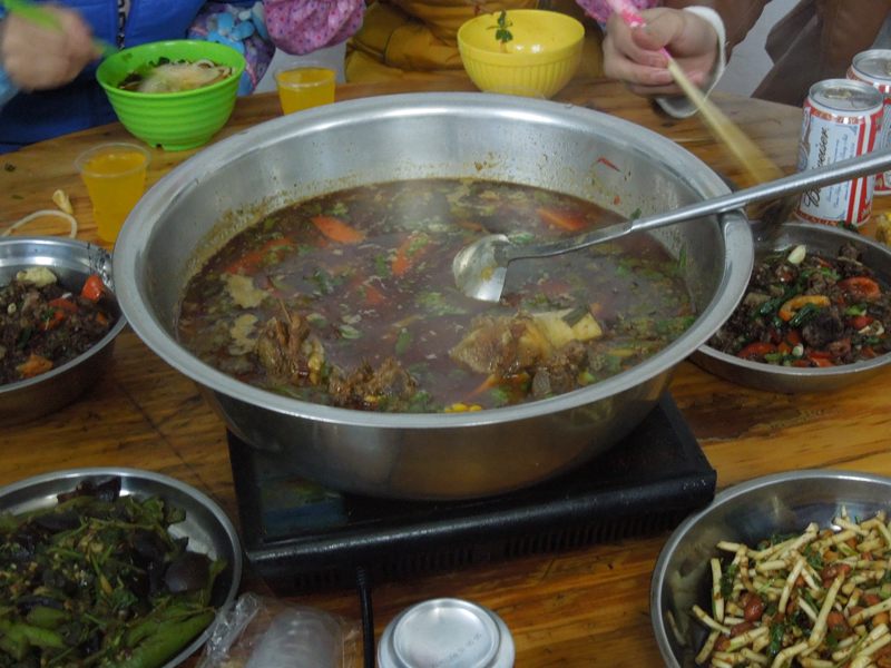 公司老板葉總親自下廚,老板平時很愛下廚,到了這一天,當然也不會閑下來,煮羊肉火鍋的湯和羊排是早在一天前就已經(jīng)燉煮好了,葉總把火鍋的底料和調料配好,再經(jīng)過自己的精心安排,濃濃的香味早就撲鼻而來,遠在食堂門口,就可以聞到羊肉的湯的那味道。羊肉湯對胃有保護的效果,經(jīng)常喝酒的人常喝羊肉湯為胃壁有保護的作用,這個是醫(yī)學上都有有說法的。